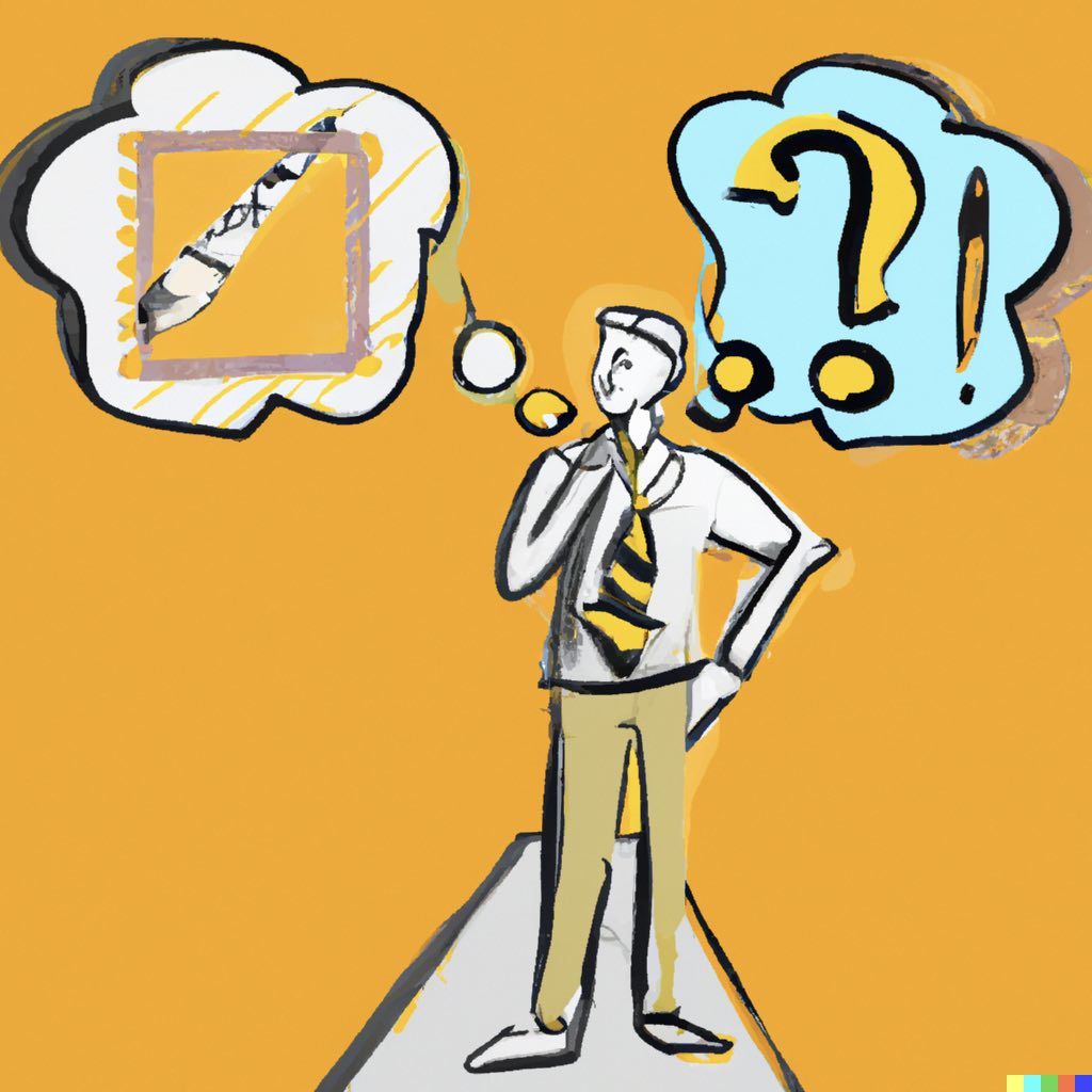 DALL·E prompt: Sketch of guy trying to decide next career move in colorful mid-century style
