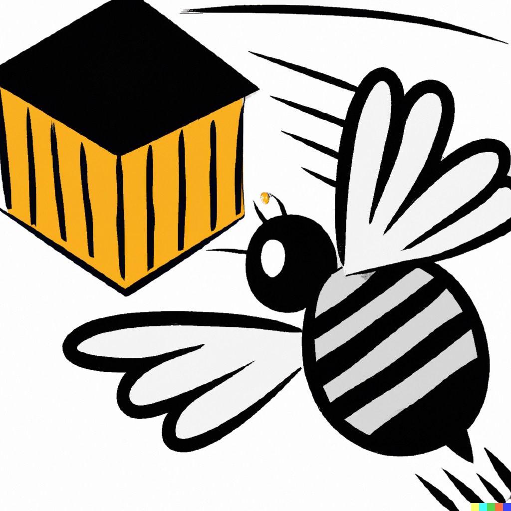 DALL·E prompt: Sketch of a bee leaving a company in colorful mid-century style