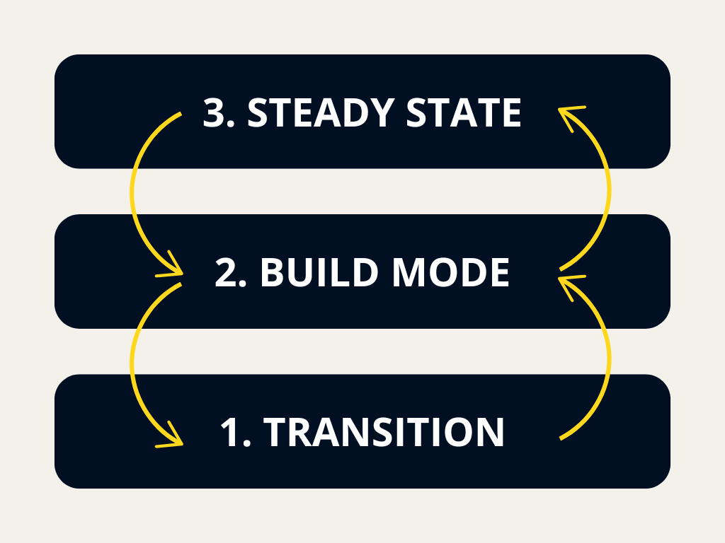 To perform at your best as a value creator and revenue generator, you need to identify which phase you’re in—Transition, Build Mode, or Steady State—so you can match your rhythm to the right priorities and pace.